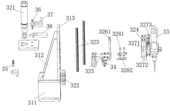 气缸驱动螺丝批下压,批嘴组件对准物料螺丝孔(图3批嘴本体341)。